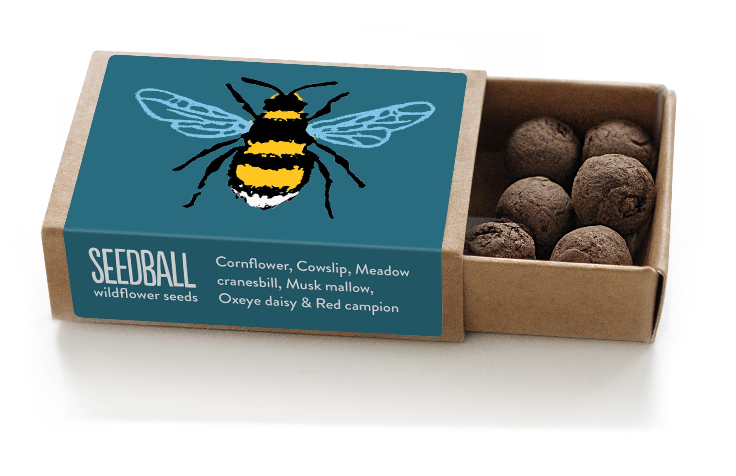 Each box is 5.8cm x 3.7cm x 1.5cm (like an old small matchbox size), and contains 6 seed balls to grow beautiful wildflowers in a window box, balcony pot or garden bed. One box will cover 1-2 pots. Each box contains a different bee friendly wildflower mix, with each seed ball containing approximately 30 seeds.